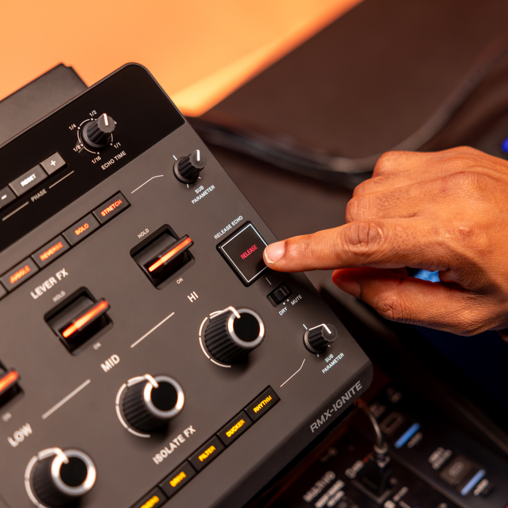 RMX-IGNITE är en avancerad effekt- och sampler-enhet för DJs som vill leva-framföra och manipulera ljud med expressiva kontroller i realtid.